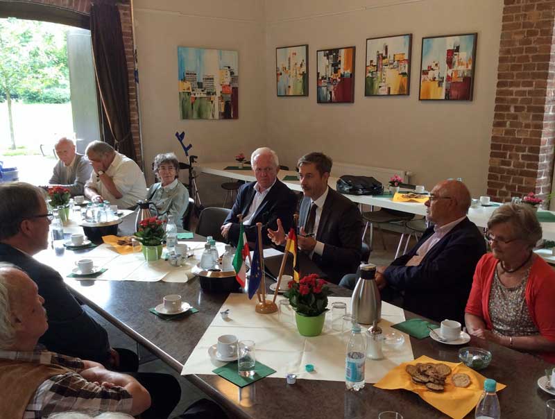 Das Treffen im Europäischen Friedenshaus hatte Honorarkonsul Prof. em. Hubert Schulte Kemper vermittelt. Gemeinsam mit anderen Gästen entwickelte sich ein angeregtes Gespräch über Projekte, wirtschaftliche Entwicklungen und Planungen zwischen der Bundesrepublik und Ungarn. Bei allen Gemeinsamkeiten wurden auch die aktuellen unterschiedlichen politischen Ansichten in einigen Bereichen angesprochen.