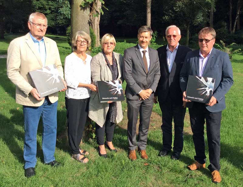 Zum Abschluss der Gespräche überreichte der Generalkonsul den Anwesenden ein Buch mit dem Titel: „Sehnsucht nach Freiheit“. Dieses Buch, zusammengestellt von Leslie Mandoki, enthält Berichte über Erlebnisse in der Nachkriegszeit mit Beiträgen von ungarischen und deutschen Persönlichkeiten, u.a. auch von Prof. Dr. Guido Knopp.