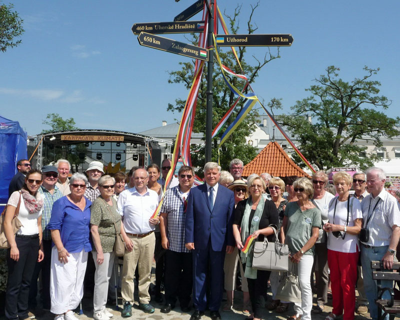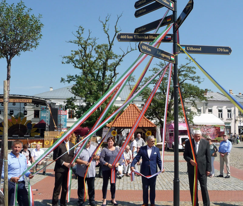 Nach der offiziellen Begrüßung aller Städtepartner der Stadt und Eröffnung des Karpatenfestes wurde ein Wegweiser mit den Namen aller Städtepartner der Stadt Krosno, auf dem Marktplatz feierlich eingeweiht.