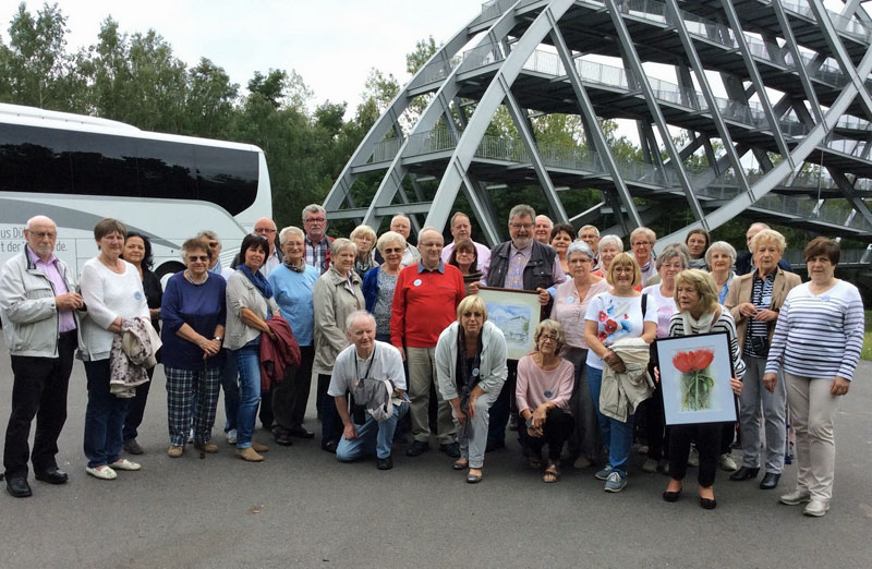 Da Bitterfeld sozusagen am Wege lag, legten wir eine kleine Pause ein und wurden von Ortsbürgermeister Joachim Gülland und Anne Hesselt herzlich empfangen. Nach einer kleinen Stadtführung und Besichtigung des „Bitterfelder Bogen“ gab es Kaffee und Kuchen. Zum Abschied überreichte Brigitte Vorholt dem Bürgermeister im Namen der Reisegruppe ein Aquarell des Marler Rathauses. Weiter ging die Fahrt über Dresden nach Krakau.