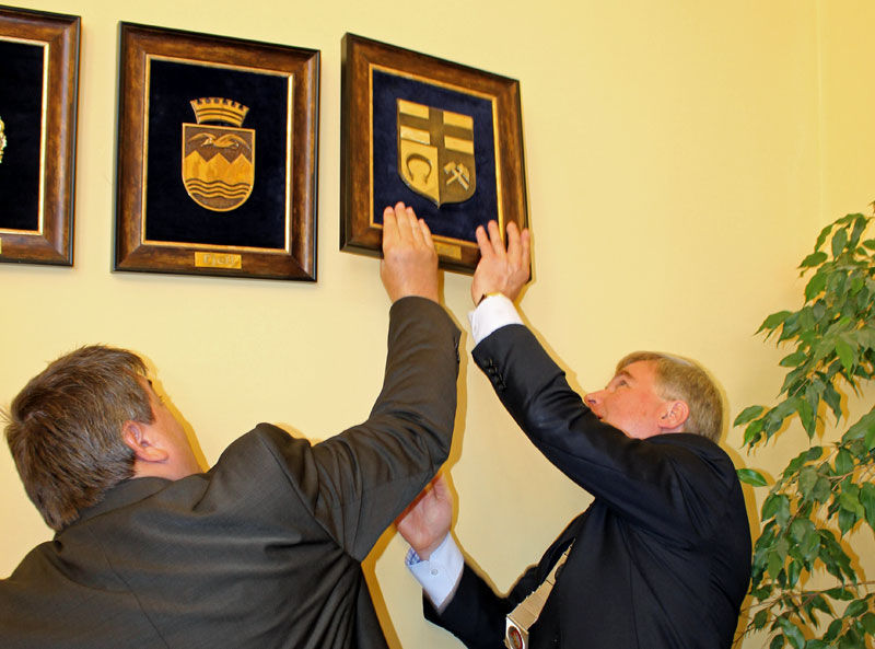 Eine Plakette des Marler Stadtwappens ergänzte die schon an der Wand des Sitzungssaals angebrachten Tafeln der bestehenden Städtepartnerschaften.